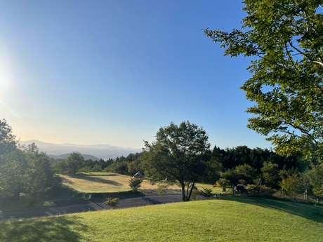 この写真の奥に、ヌボーっと見えるのが山頂。